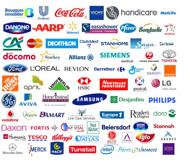 Assurance / Banque : Saga, Crédit Mutuel, Desjardins, City Group, Metlife, Finaref, AGF, Crédit Agricole, Médéric, Prudential, April, Alptis, AXA, American Express, Allianz, General Electric, MasterCard, Merrill Lynch, Firmenich, CNP, La Mondial, MMA, Natixis, Carac, Malakoff Médéric, Macif, Humanis, Banque Accor, Caisse des Dépôts…